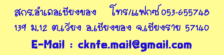 ศูนย์ส่งเสริมการเรียนรู้อำเภอเชียงของ (สกร.อำเภอเชียงของ) หรือ กศน.อำเภอเชียงของเดิมนั้น ตั้งอยู่ในบริเวณที่ว่าการอำเภอเชียงของ ถนนสายเชียงราย-ท่าเรือบั๊ค ห่างจากจังหวัดเชียงราย 105 กิโลเมตร จัดการศึกษาใน 3 รูปแบบ ได้แก่ 1.การเรียนรู้ตลอดชีวิต 2.การเรียนรู้เพื่อการพัฒนาตนเอง 3.การเรียนรู้เพื่อคุณวุฒิตามระดับ ในพื้นที่อำเภอเชียงของให้กับประชาชน ชาวพื้นเมืองล้านนา และกลุ่มชนเผ่า ชาติพันธุ์ ได้แก่ ไทลื้อ ขมุ ม้ง ลาหู่ เป็นต้น มีผู้บริหารและบุคลากรปฏิบัติงานในพื้นที่ จำนวน 21 คน มีศูนย์การเรียนรู้และแหล่งเรียนรู้ คือ กศน.ตำบล 7 แห่ง, ศูนย์การเรียนชุมชนชาวไทยภูเขา “แม่ฟ้าหลวง” ศศช. 4 แห่ง ศูนย์การเรียนชุมชน 2 แห่ง และห้องสมุดประชาชน 1 แห่ง ปัจจุบันมีนายประจันทร์ อินประสงค์ เป็นผู้อำนวยการสถานศึกษา