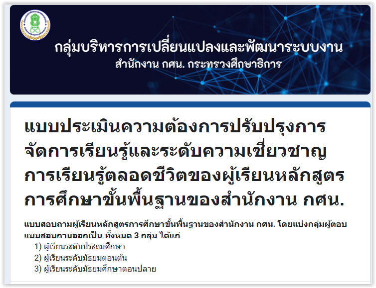 ขอเชิญชวนนักศึกษา กศน. ตอบแบบประเมินนี้ เพื่อเป็นประโยชน์ต่อการจัดการศึกษา กศน. ต่อไป