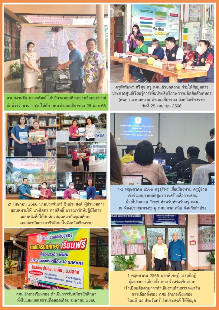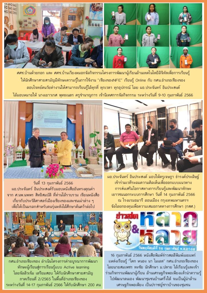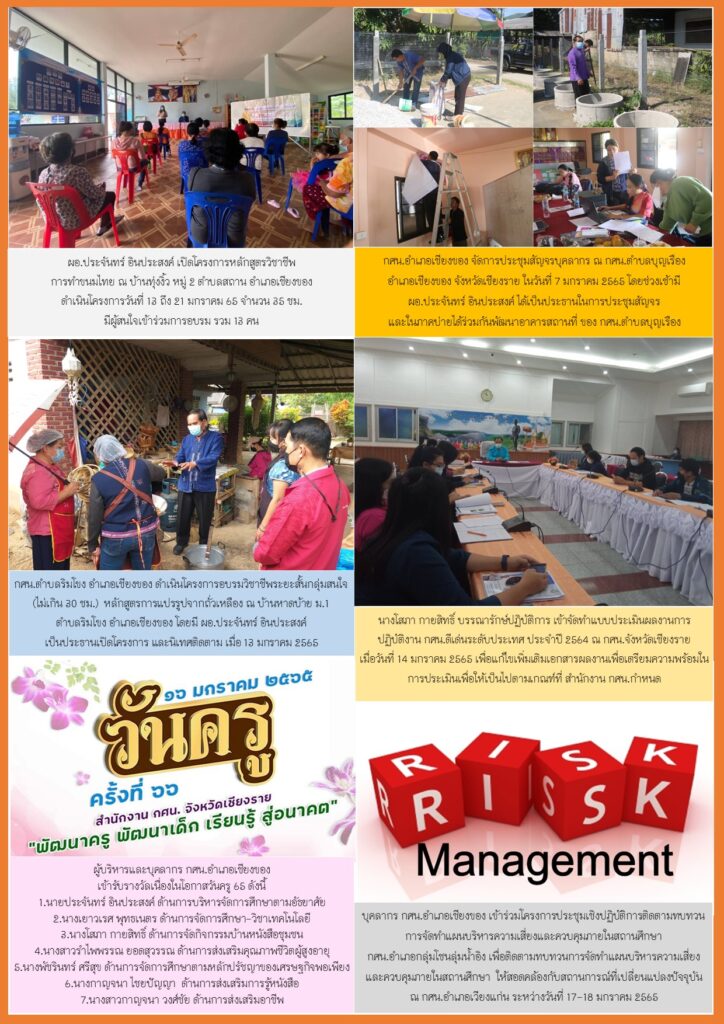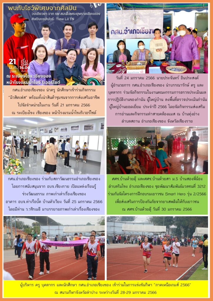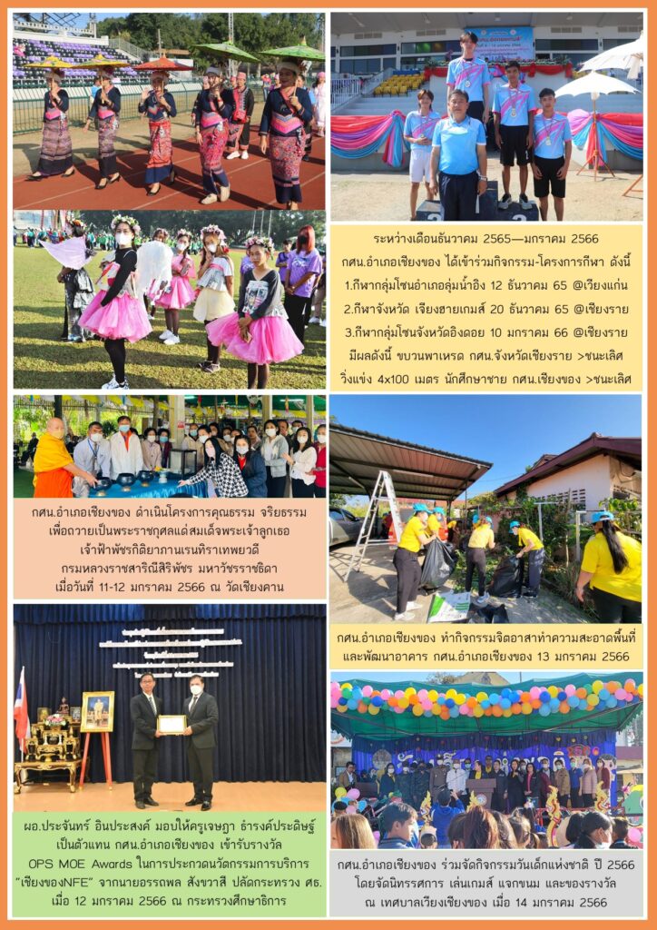 ผอ.ประจันทร์ อินประสงค์ นำคณะครูเข้าร่วมกิจกรรมวันครูครั้งที่ 67 ประจำปี 2566 พร้อมทั้งรับรางวัลการจัดการศึกษาขั้นพื้นฐานดีเด่นประจำปี ณ สำนักงาน กศน.จังหวัดเชียงราย เมื่อวันที่ 16 มกราคม 2566