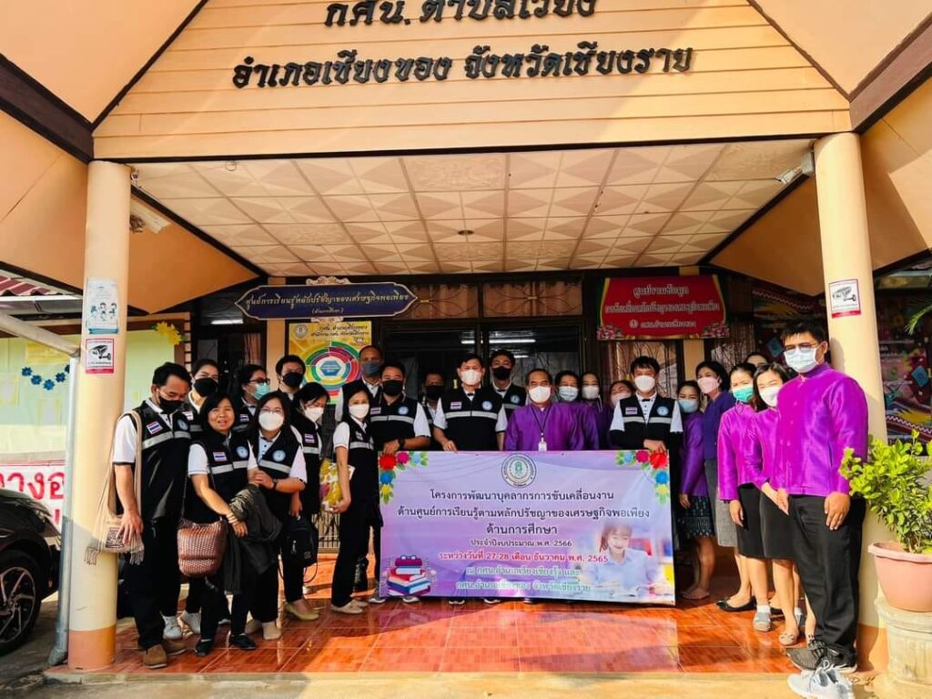 นายภูดิศ เผ่าเรือน ครูชำนาญการ รักษาการในตำแหน่งผู้อำนวยการ นำครูและบุคลากร กศน.อำเภอเวียงเชียงรุ้ง เข้าศึกษาดูงานการดำเนินงาน ศูนย์การเรียนรู้ตามหลักปรัชญาของเศรษฐกิจพอเพียง กศน.อำเภอเชียงของ โดยมี ผอ.ประจันทร์ อินประสงค์ พร้อมคณะทำงาน นำเสนอข้อมูลแนวทางการรับการประเมินเพื่อเป็น ศูนย์การเรียนรู้ตามหลักปรัชญาของเศรษฐกิจพอเพียงของกระทรวงศึกษาธิการ เมื่อวันที่ 27 ธันวาคม 2565 ณ ห้องประชุม กศน.อำเภอเชียงของ